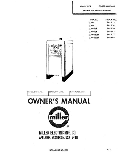 Web View Online (50 Pages) Or Download Pdf (1 Mb) Miller 330, 320P, Hj218575, 330A/Bp, 330P, 320, 320A/Bp Owner's Manual • 330, 320P, Hj218575, 330A/Bp, 330P, 320,.