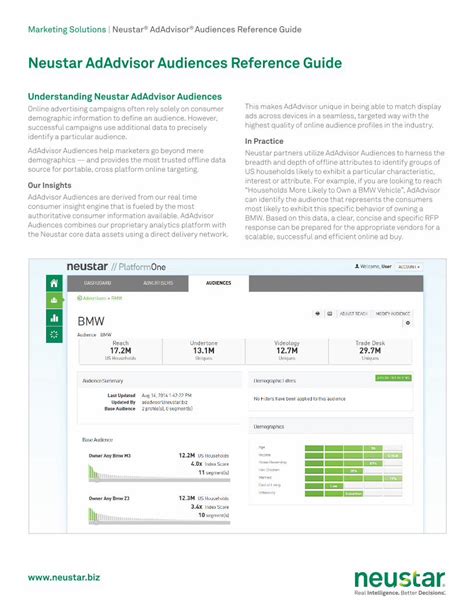 Neustar Adadvisor Audiences Reference Guide. Contact us neustar headquarters 1906. Web web adadvisor delivers financial audience data for your marketing campaigns using two proprietary metrics: